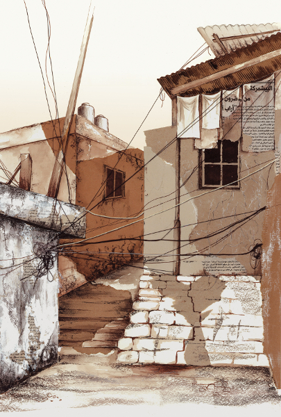 An exhibition of mixed-media drawings inspired by artist Victoria Fifield’s year spent living and working in the occupied West Bank in Israel/Palestine.